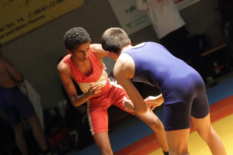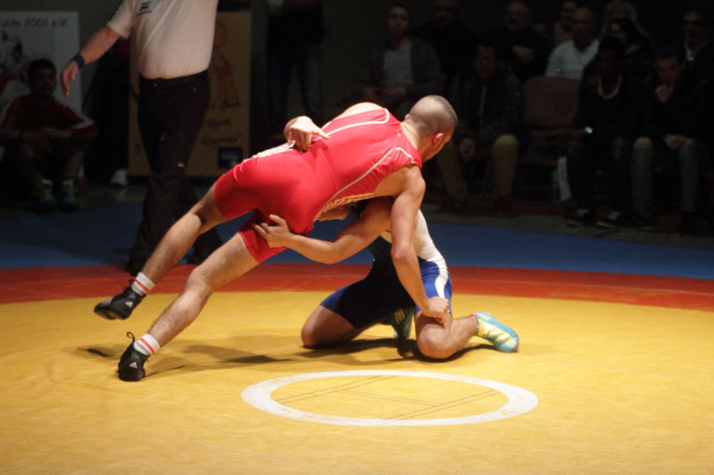 In der Antike traten die Athleten auch beim Ringkampf nackt an. Sie wurden nicht in verschiedene Gewichtsklassen eingeteilt. Derjenige, der den Gegner zuerst dreimal auf den Boden warf, war Sieger. Der Bodenkampf fand nicht statt, im Gegensatz zu heute, wo viele Aktionen am Boden gemacht werden.
